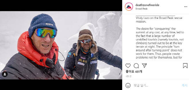 비탈리 라조 (vitaly lazo·48)는 지난 24일 (현지시간) 자신이 속한 러시아 등반대 '데드존프리라이드' (death zone freeride) 공식 인스타그램 계정에 당신들은 sns에서 8000m를 정복한.